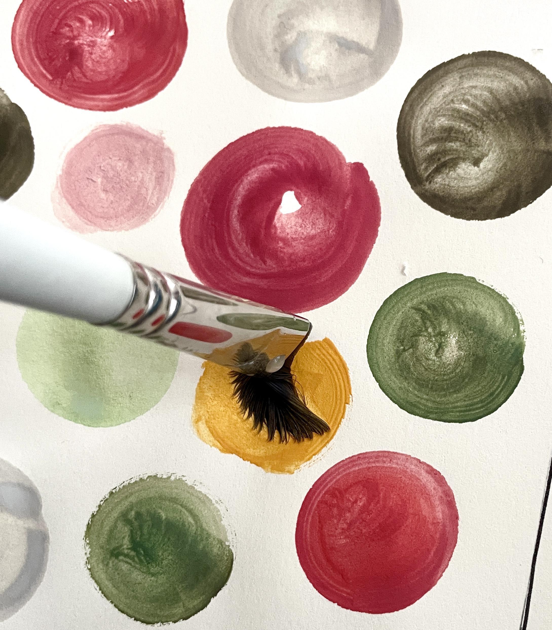 Du kannst den Pinsel zwischendurch reinigen – oder bewusst nicht. Wenn du eine Pinselkante in eine neue Farbe tippst, entstehen feine Übergänge und unerwartete Mischungen.